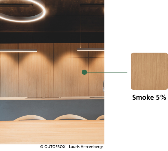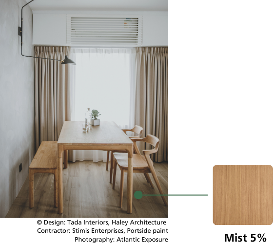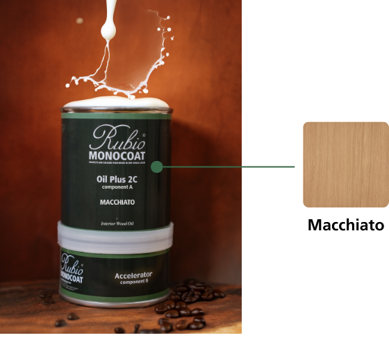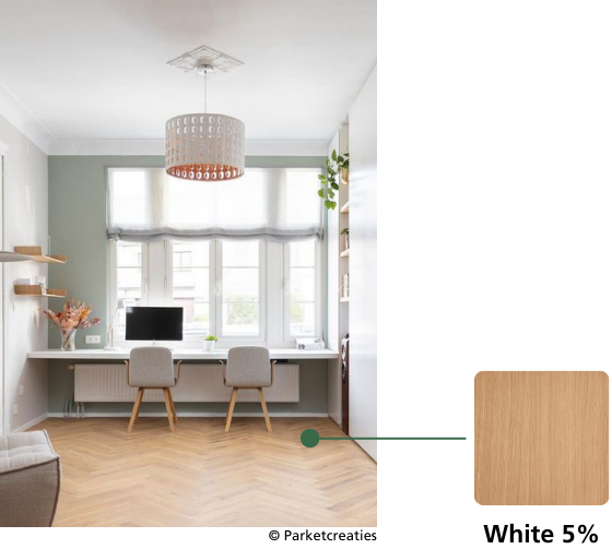 Onze Mist 5% is een beetje geler en tot slot geeft Macchiato het een warmere uitstraling. Bekijk het als een ladder waarbij hoe hoger je komt, hoe warmer de kleur van je eikenhout wordt, waarbij Smoke 5% het koelst is en Macchiato de warmste toon geeft.
