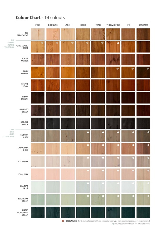 We beschikken over een systeem waarmee je de beste kleur kunt kiezen voor elk project. Hieronder vind je een leidraad met de aangewezen kleuren voor iedere houtsoort. Zo worden Salinas Blue op Iroko en Grassland Beige op thermisch behandeld naaldhout afgeraden. Foxy Brown op Ipé en Grassland Beige op den en lariks zijn dan weer onze favorieten voor een natuurlijke uitstraling. Volg deze leidraad of neem contact met ons op voor kleuradvies.