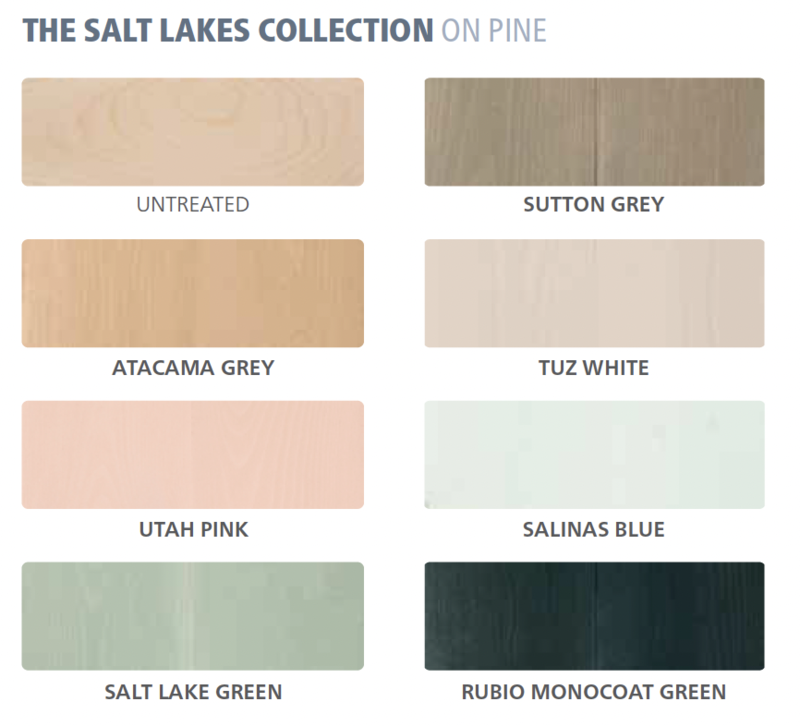 - Salinas Blue verandert van kleur naargelang de houtsoort. Op dennenhout en lariks heeft het bijvoorbeeld groenere tinten, maar op Douglas komt de lichtblauwe kleur mooi tot uiting. Dit doet denken aan de kleuren van kiezelstenen op het strand of een meer dat ’s morgens in de eerste zonnestralen schittert.