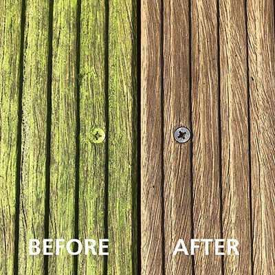 Voordat je begint met het behandelen van je buitenhout met een kwalitatieve afwerking, is het altijd slim om groene aanslag en vuil te verwijderen of om je houten oppervlak te ontvetten.