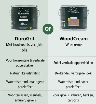 - Elke 2 jaar opnieuw aanbrengen op horizontale oppervlakken (bijv. vlonders, tuintafels etc.)