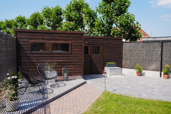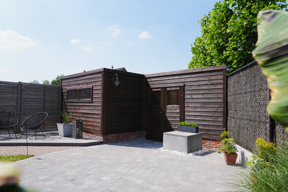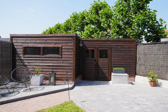 Dit tuinhuis kan er weer voor een lange tijd tegenaan! Dankzij de DuroGrit in de kleur "Rocky Umber" is het beschermd tegen alle natuurelementen.