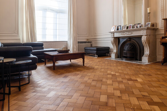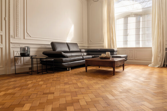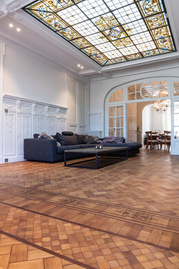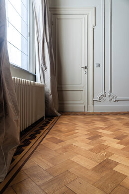 Dit prachtige huis in Ronse (België) uit de jaren 1920 bestond oorspronkelijk uit twee aparte huizen. De eigenaars besloten de authentieke elementen te behouden om één groot huis te creëren. Naast de authentieke elementen wilden ze ook de natuurlijke look van de houten vloeren behouden. Met deze visie begon Che Polfliet van C-Parket met het opfrissen en renoveren van de houten vloeren, met behulp van Rubio Monocoats Pre-Aging en Oil Plus 2C.