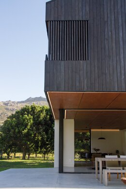 Voor de gevelbekleding van deze prachtige woning in Hout Bay, Kaapstad, is gekozen voor WoodCream omdat de afwerking het uiterlijk van Shou Sugi Ban (een oude Japanse techniek om hout te verbranden) nabootst. Dit huis is ontworpen door Salt Architects en gebouwd door Musa Renovations and Projects. De huiseigenaren wilden dat de gevelbekleding er modern uitzag zonder te "gelikt" over te komen of te veel glans in de afwerking te hebben. WoodCream creëerde een natuurlijke uitstraling, waarbij de variatie van de natuurlijke houtnerf en het verweerde uiterlijk zichtbaar werd. Naast de esthetiek kozen ze voor dit product vanwege het gebruiks- en onderhoudsgemak.