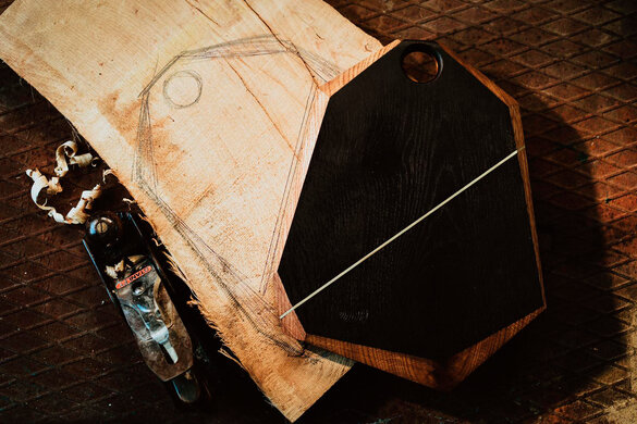 Deze snijplank, behandeld met onze Oil Plus 2C, is nu Food Contact Compliant en klaar voor gebruik! Om de diepzwarte kleur aan één zijde te verkrijgen, is een combinatie van onze Precolor Easy in Intense Black en onze Oil Plus 2C in Black gebruikt.