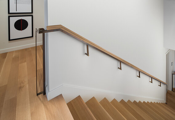 Deze natuurlijke en rustige look werd gecreëerd door True Fabrication. Ze gebruikten onze Rubio Monocoat Oil Plus 2C in de kleur Natural om de houten vloeren en de prachtige trap een matte uitstraling te geven. De vloeren, leuningen en draaitrap zijn gemaakt van 100% rift gezaagd witte eik.